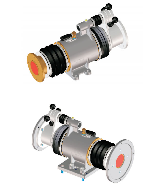 Çalıştırma gücü hareket aktarma flanşı tarafından tutulur. Sabit flanş makine gövdesinde sert olarak bloke edilmeden yalnızca tepki çiftini tutmalıdır.
